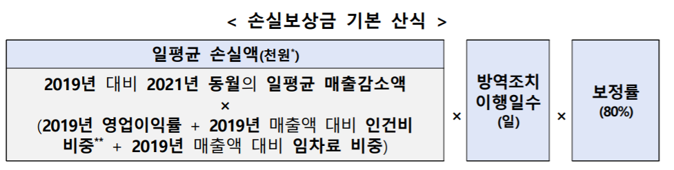 손실보상금 = 일평균 손실액 × 방역조치 이행일수 × 보정률